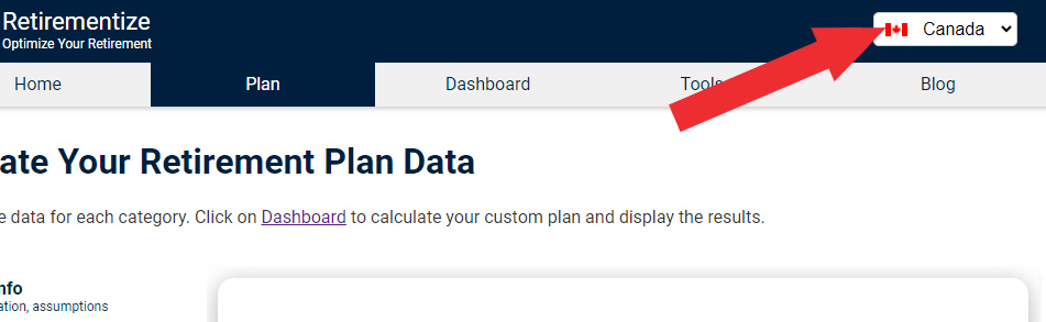 Pick your country. This is needed to ensure you are offered the correct retirement income sources, and taxes are processed correctly.