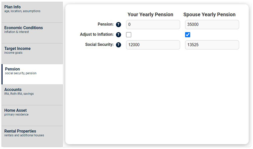 - Adjust to Inflation: Check this box if you pension will increase with inlfation. (Most pensions do adjust to inflation.)