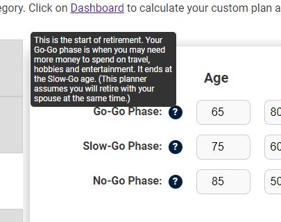 - Social Security is entered when taken at age 67. This can be changed in the Dashboard.